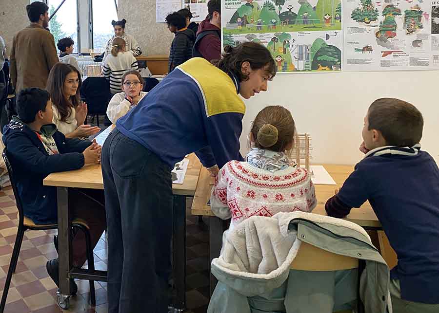 Dans le cadre du concours national Mini Maousse proposé chaque année par la Cité de l’Architecture et du Patrimoine de Paris, les étudiants en année 3 du Bachelor design d’espace, mobilier et micro-architecture ont travaillé en partenariat avec l’école primaire de La Solitude – accompagnée par madame Moulin, institutrice – pour développer un projet répondant au sujet de l’édition 2024-2025. Justine Hotelier et Yoan Mayer, architectes et professeurs au sein de la formation les ont encadrés.