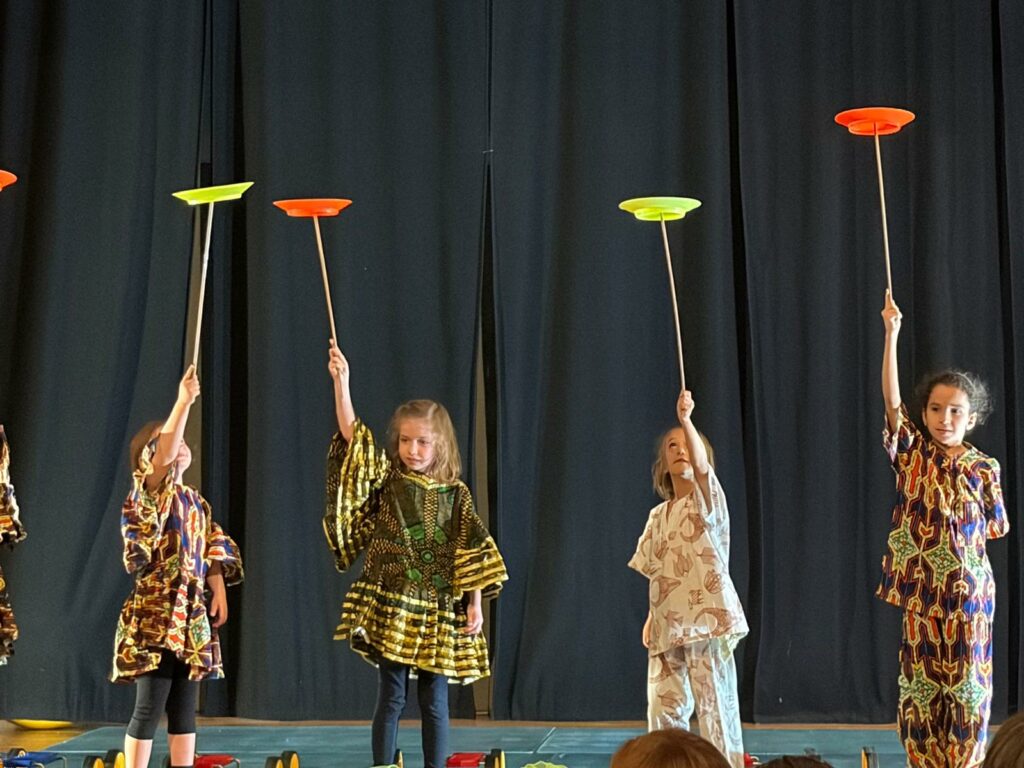 Le 2 décembre dernier, nos élèves de CP ont offert un spectacle haut en couleurs intitulé « En piste autour du monde des écritures ». Préparée avec enthousiasme aux côtés de leur professeur de sport et de leur professeur de chant, cette représentation circassienne a permis aux enfants d’explorer différentes formes d’expressions corporelles et vocales, tout en découvrant la richesse des alphabets et des écritures du monde.