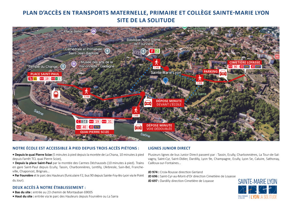 Notre site de La Solitude se situe sur la colline de Fourvière, au pied de la Basilique, dans une propriété de 7 hectares dans un parc arboré dominant un méandre de la Saône. Un cadre d'étude et d'épanouissement unique à Lyon pour une école.