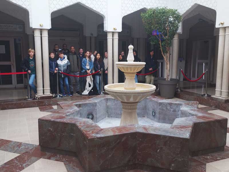 Une première classe s’est rendue à la Grande Mosquée de Lyon, dans le cadre de l’étude des grandes religions monothéistes en Histoire. Dès leur arrivée, les élèves ont été impressionnés par la beauté de l’architecture du bâtiment et par l’atmosphère calme et sereine qui y régnait.